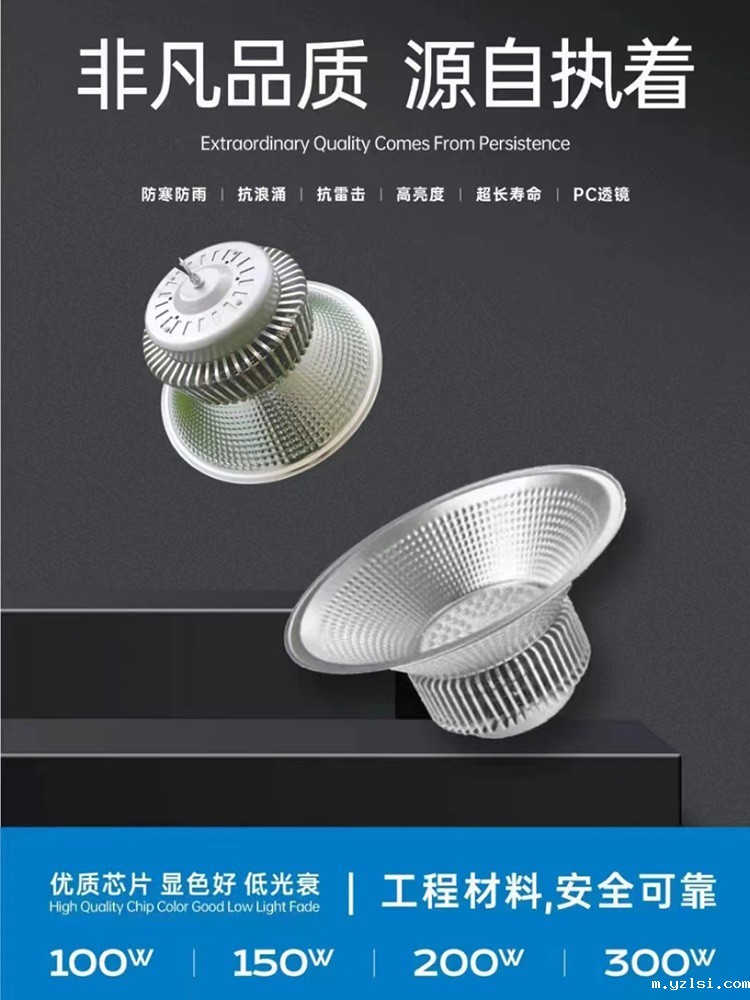 工矿灯,又称高天棚灯,是一种高能效的室内 LED 灯具,可以广泛应用在工业厂房、生产车间、商超、体育娱乐场所以及仓库等。按照明功能可分为一般照明灯和局部照明灯两种。为了满足不同生产作业的视觉需要和灯具安装条件的需要,工矿灯的反射器应能产生各种宽窄程度的光分布。表面涂漆、涂釉使之呈现白色,和用铝、玻璃镜、棱镜玻璃等材料制成的反射器,都可以得到宽的光分布,适合于大面积、工作面垂直或接近垂直的工作场所。对于高大厂房和有高大机床的需要单独照明的场所,可采用棱镜玻璃、镜面玻璃和抛光铝等控光性能强的材料制成的反射器,得到窄光束分布。